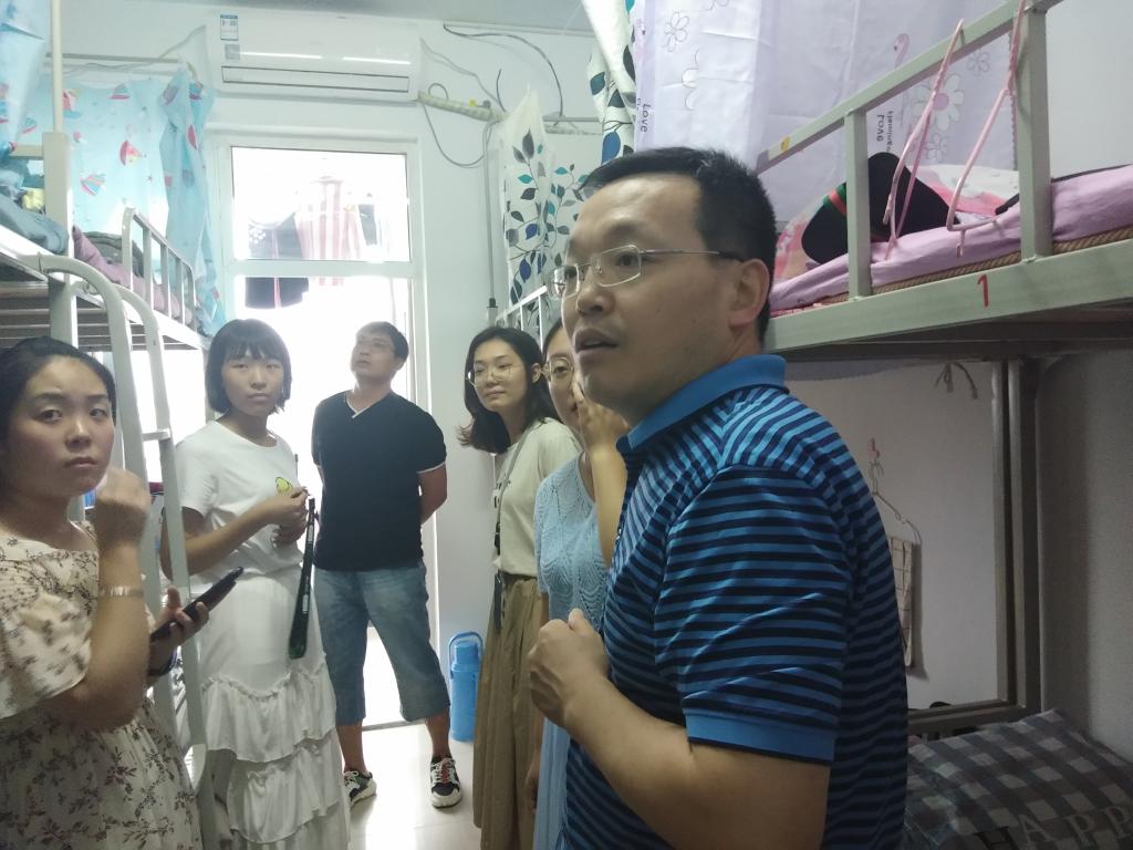 2019年8月24日下午,为了解新生入学情况,对宿舍安全、宿舍面貌进行检查,太阳集团网tyc9728党委副书记刘贵来、翟勤老师带领学生会负责人及各班朋辈辅导员到新生公寓走访慰问。