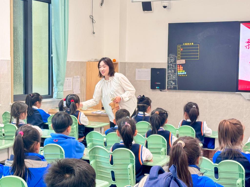 范容嘉以一张1953年景德镇工商业发票为线索,首先带领同学们感受“瓷都”景德镇深厚的陶瓷文化底蕴与产业繁荣景象。她用通俗的语言解释“工商业”涵盖的范围——包括所有从事商品生产、销售与商业服务的行业,并联系生活实际举例道:“就像大家在超市购物后收到的小票,它就是现代工商业发票的一种形式,记录交易内容与金额。”接着,她深入浅出地说明,在新中国初期,这类发票不仅是买卖凭证,更是国家规范市场、统计经济、保障税收的重要工具,为经济秩序稳定发挥了关键作用。讲解中,范容嘉还以一段朗朗上口的儿歌“工商业,包罗广,买卖服务都在忙;发票单,记端详,交易安全有保障;懂票据,知国安,小小少年责任强”串联知识点,生动诠释发票与经济安全的关系,并分享自己养成索要发票习惯的心得,鼓励同学们从小树立维护经济安全的意识。