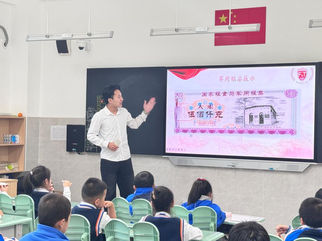 韩银龙则从发票博物馆收藏的军用粮票入手,娓娓道来这张票据在计划经济时期的重要意义。他指出,军用粮票曾是保障军粮供应、平衡军需民用、守护粮食安全、维护社会稳定的重要载体,为国家安全筑牢后勤基石。随后,他将视角转向当下,调动同学们思考为什么要在新时代了解军用粮票的历史?是因为当前的粮食安全机遇与挑战并存。他强调,军用粮票虽已退出历史舞台,但粮食安全与我们每个人的生活息息相关。呼吁同学们从日常节约做起,自觉担当守护国家粮食安全的责任。