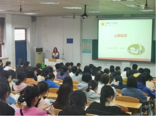 焦瑞超结合自身学习和工作经验,通过PPT讲解、视频观看、真实事例以及现场示范,从救护概论、心肺复苏、创伤救护等方面,向同学们普及急救知识,阐明掌握急救知识的重要性,并让全体学生进行绷带、三角巾包扎训练,手把手指导包扎的操作。在心肺复苏实操中,焦瑞超亲自为大家演示心肺复苏的具体流程,并强调细节,督促同学们反复练习,直至完成考核。