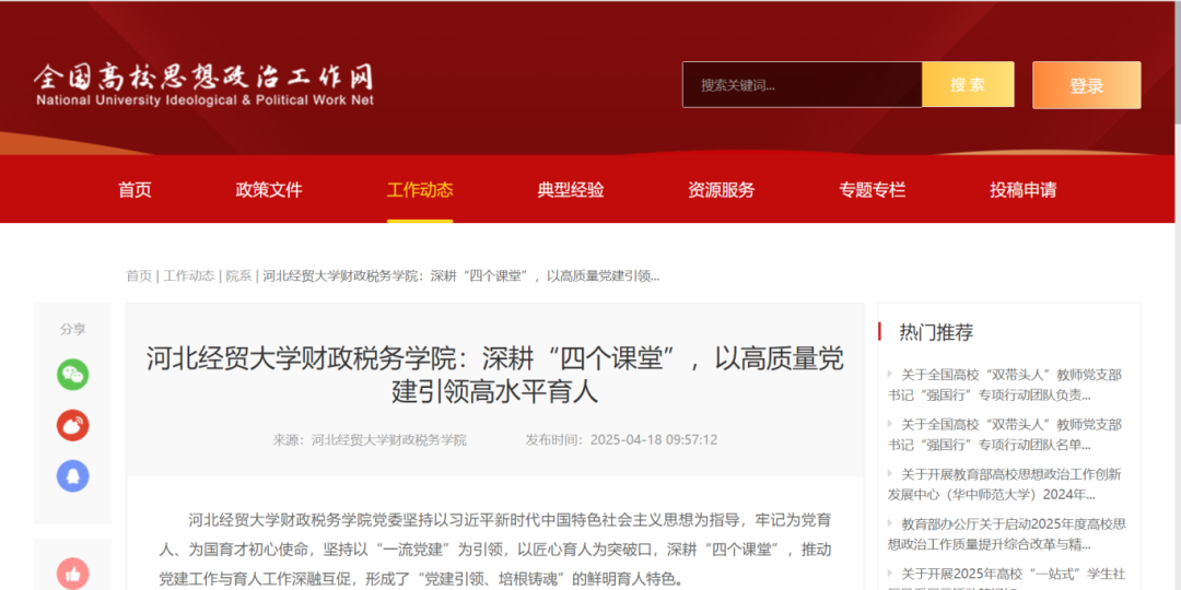 全国高校思想政治工作网报道我院“四个课堂”党建引领育人成效。太阳集团网tyc9728党委坚持以习近平新时代中国特色社会主义思想为指导,牢记为党育人、为国育才初心使命,坚持以“一流党建”为引领,以匠心育人为突破口,深耕“四个课堂”,推动党建工作与育人工作深融互促,形成了“党建引领、培根铸魂”的鲜明育人特色。