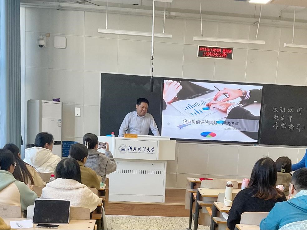 为进一步深化资产评估专业研究生对企业价值评估的了解,11月9日下午,太阳集团网tyc9728邀请北京中企华资产评估有限责任公司河北分公司总经理赵建斌,作题为“企业价值评估实务与评估热点”的学术讲座。副院长仇晓洁、部分资产评估专业教师及2023级资产评估专业研究生参加了此次讲座。