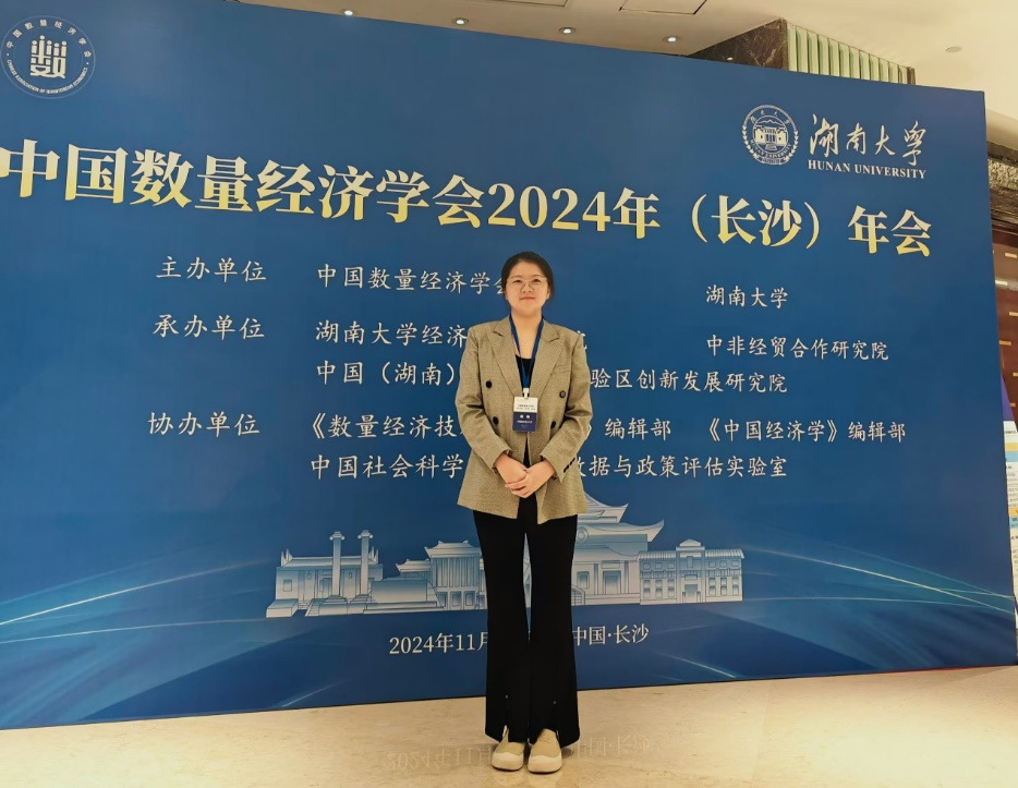 2024年11月2日,中国数量经济学会2024年年会在湖南长沙召开,本届年会由中国数量经济学会与湖南大学联合主办。我院财政系陈琳博士应邀参加此次会议。