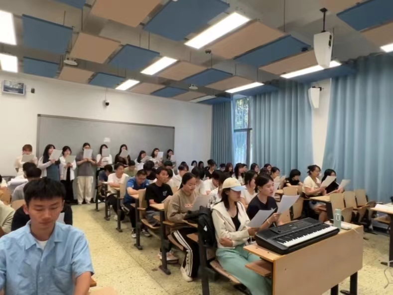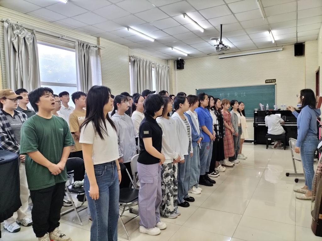 我院非常重视本次合唱比赛,邀请艺术学院专业指导教师牛明会对合唱团成员进行专业指导,由团委书记安宁担任指挥。同时学院为合唱团成员提供训练场所与统一服装,为合唱团提供强有力的支持与动力!