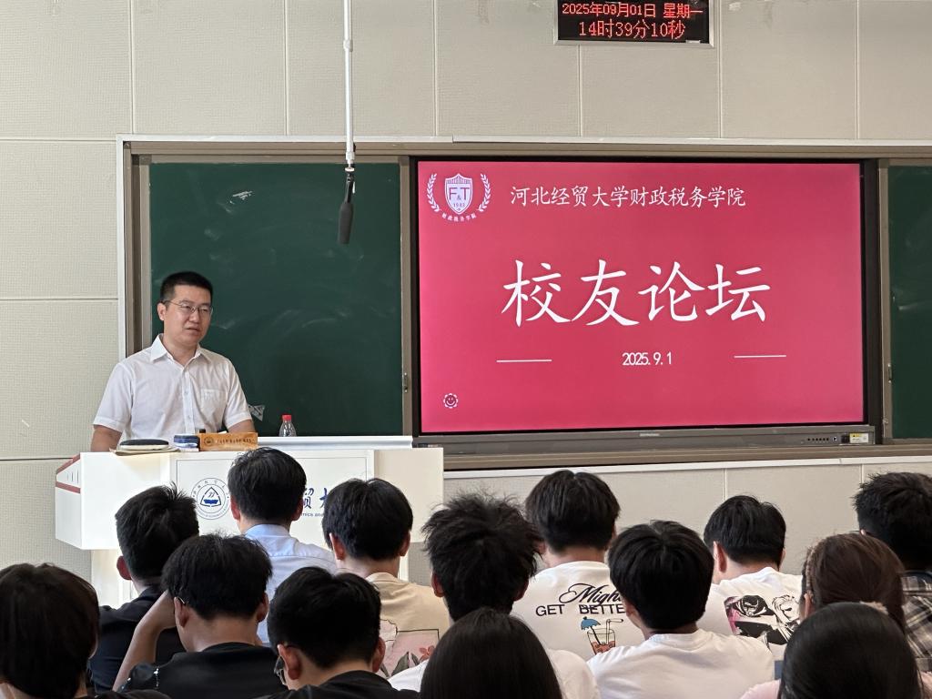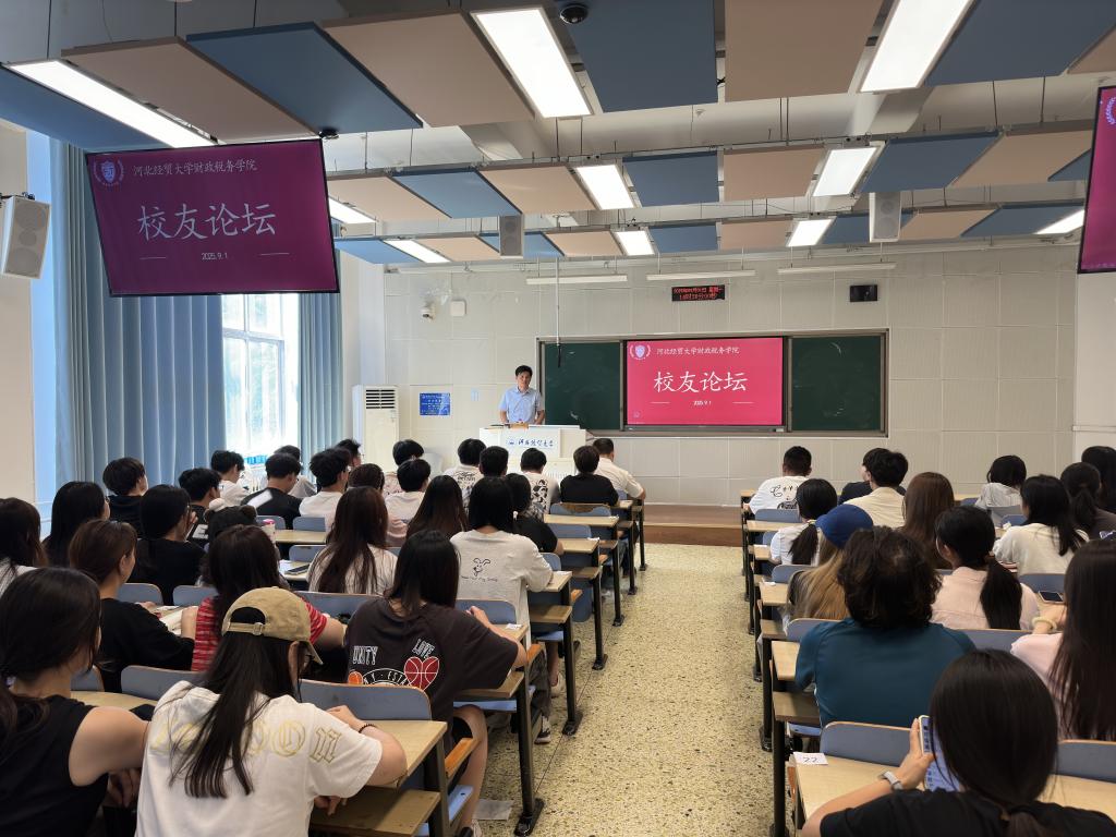 论坛伊始,王学松借自己毕业20周年的契机,深度分享了这些年在财税领域的就业创业经历。他建议学生们先就业再创业,其中主要围绕财务处理、资产评估逻辑和税务筹划等核心内容展开讲解,让同学们直观的了解了三大行业的专业要求以及跨学科交融的市场竞争态势。交流互动环节,王学松耐心解答了同学们有关行业准入门槛的问题。最后,王学松代表天津校友向大家发出邀请,欢迎同学们到天津发展。